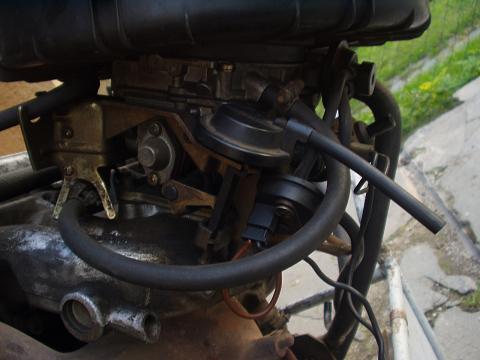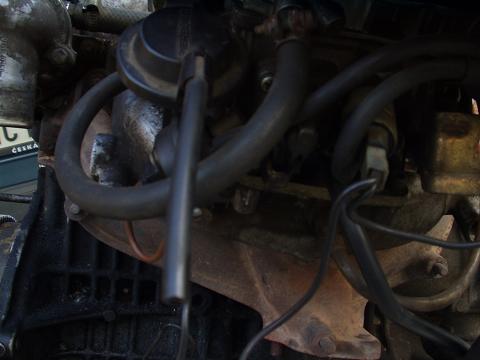 Já jsem taky koukal na pár karbců a žádnej to tam neměl! :-/ Je to hadička od nějakýho podtlaku. Ale kam ji zapojit?