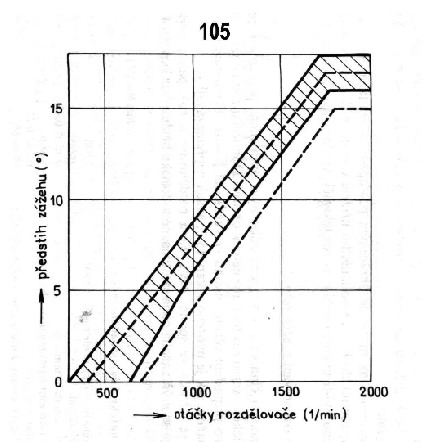 105 rozdelovac se dava proto ze 105 mela male vrtani(68) a velky zdvih(72) proto dava rychleji a vic predstih nez treba fa(75,5-72)rozdelovac....