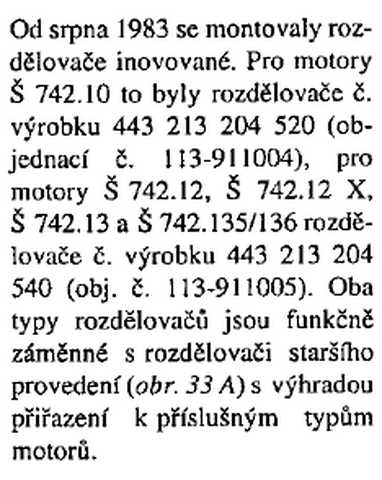 Nevíte jaký má označení rozdělovač na 136x? V krámech se dnes totiž už dá sehnat jen nějakej tušim xxx xxx 204 údajně jako pro 50KW karbec...ten mám teda i já. Ale nikde v knížkách jsem výrobní rozdělení nenašel.