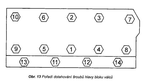 a já ti to řeknu srozumitelně, dotáhneš všechny šrouby momentem 17-25 Nm, potom včechy šrouby otočíš o 90° a pak ještě jednou všechny šrouby dotáhneš o 90°. a pak dotáhneš matice pod svíčkama. chceš i pořadí šroubů?