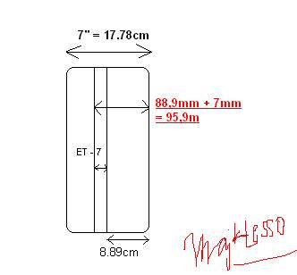 stred je posunutej o 7mm smerem k vnitrku od stredu, takze polovina rafku + zaporne ET to je 9.59cm a to se rovná vzdálenosti vnejsiho lemu kola od náboje?