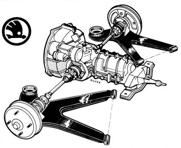 ja bych to misto prevarovani pricky udelal jako to kdysi mel niky. drzaky sikmejch jako u LR, prevodovka chycena zeshora., viz obr - je to ale blbe videt... ale je jasny ze na STK bude mit vetsi uspech tvoje reseni ;-)