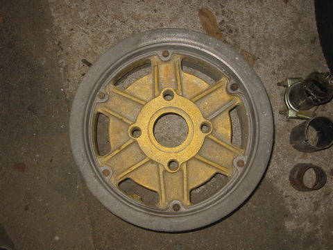 Jinak uplně nejlepší jsou nově odlité z elektronu z Hradecké elektronky, "eo ipso" kola jsou nové, slitina nová bez vnitřní mikrokristalické koroze, která může u disku který je dole na fotce být už ve značně pokročilé fázi a materiál je pak při ostružení pod povrchem jako perník(což ale může být a nemusí-to je případ od případu,záleží na předchozím zacházení).
