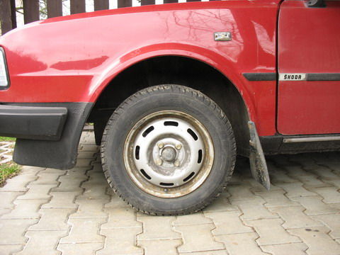 Tady mezera mezi blatnikem...ale mam tam ted zimni pneu...profil 70...hodim taky foto jak to vypadalo s 15"