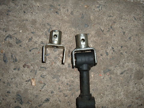 Tak jsem si dnes dával na své nové táhlo místo toho plastového mezikusu jeden starší ale dobrej pogumovanej a odhalil jsem ještě jedno politováníhodné šetření na nových druhovýrobních táhlech a sice ta vidlička, do které se zasouvá ten mezikus je na novém provedení podstatně oslabená a já jsem ji měl dokonce za 2 roky provozu pěkně pokroucenou, tak tam šlo celé staré, ale lepší táhlo, které má obě vidličky silnější. Na obrázku je vidět rozdíl a na táhle je to to samé
